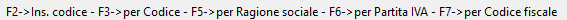 Fornitore: inserire o ricercare il codice del fornitore. Se si conosce il codice del fornitore va imputato con non più di 6 caratteri, altrimenti è possibile ricercarlo con le funzioni indicate sulla barra di stato o cliccando il tasto dx 8 mouse