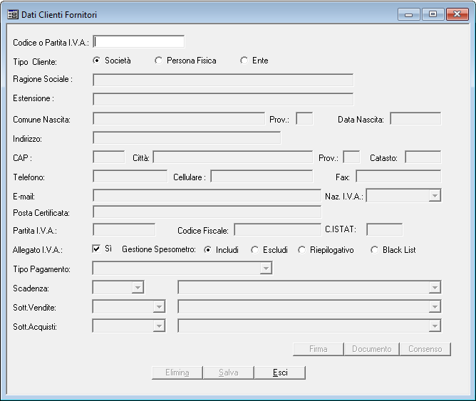 Dati Anagrafici Clienti e Fornitori
