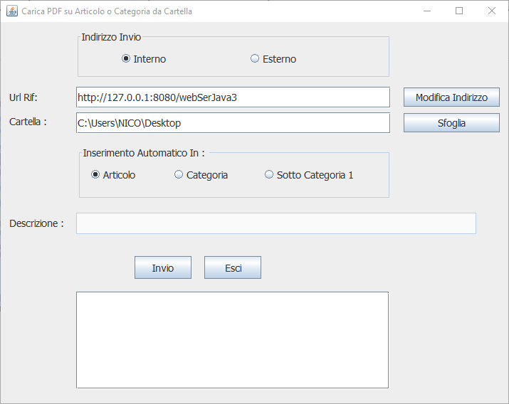 Con questo programma è possibile importare ed abbinare in automatico tutti i file pdf presenti in una cartella, i quali dovranno avere come nome il codice dell'articolo, piuttosto che della categoria o sottocategoria.