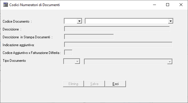 Cod. Documento: selezionare o inserire il cod. del numeratore da trattare.