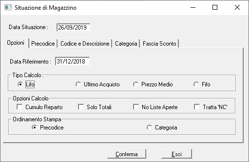þ Tratta 'NC': attivare questa opzione se desiderate considerare nella situazione anche le movimentazioni del codice Non Codificato.