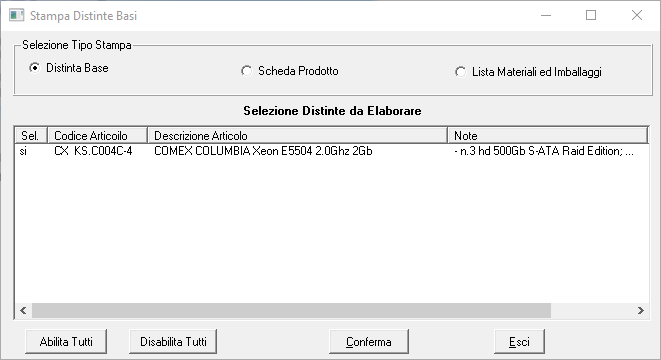 Con questo programma sarà possibile ottenere la stampa delle distinte che saranno selezionate nel riquadro in basso, su tre report diversi.